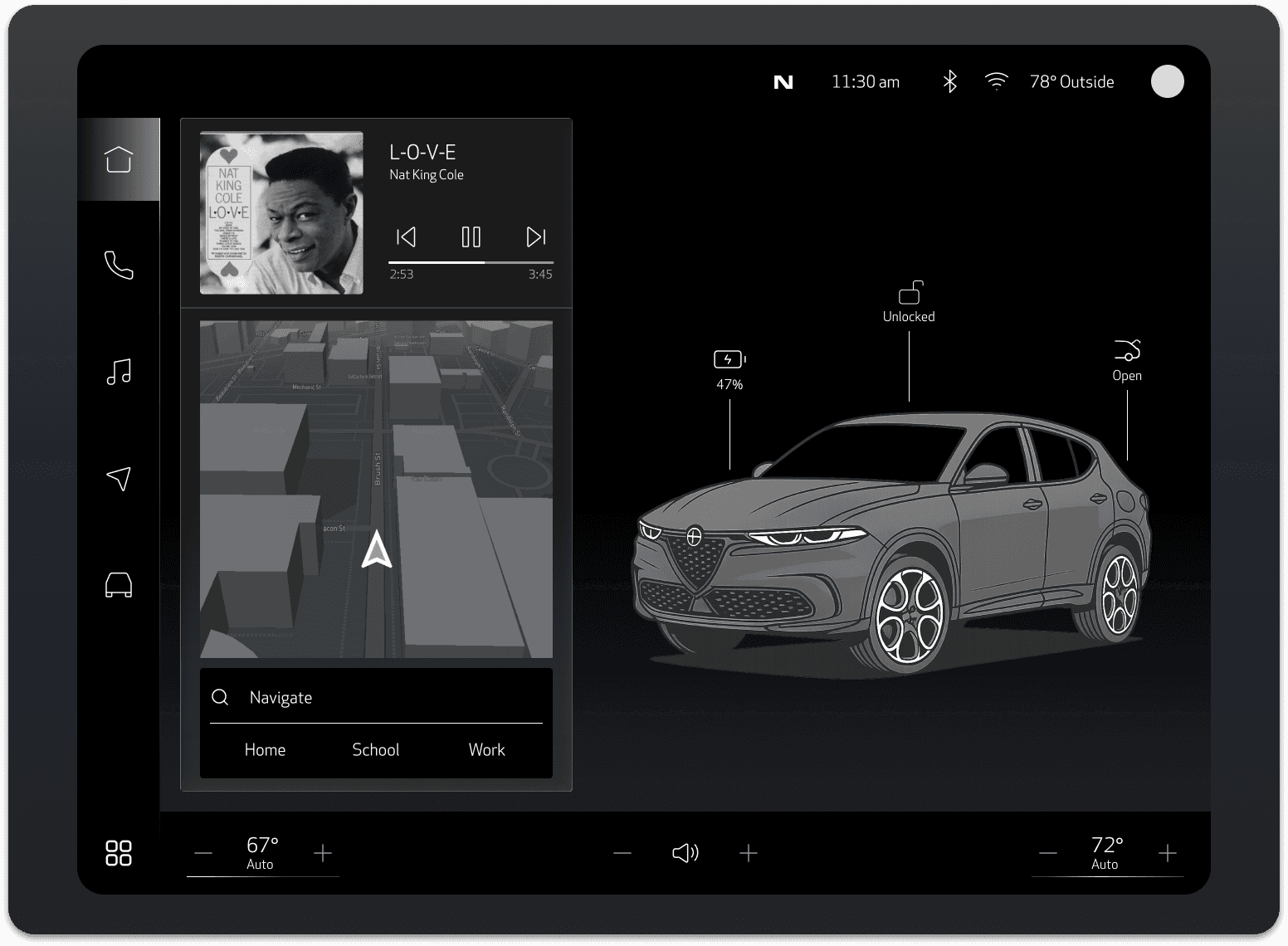 A major challenge during wireframing was establishing a clear information hierarchy by determining which functions should remain immediately accessible while driving, where quick reactions are critical for safety.