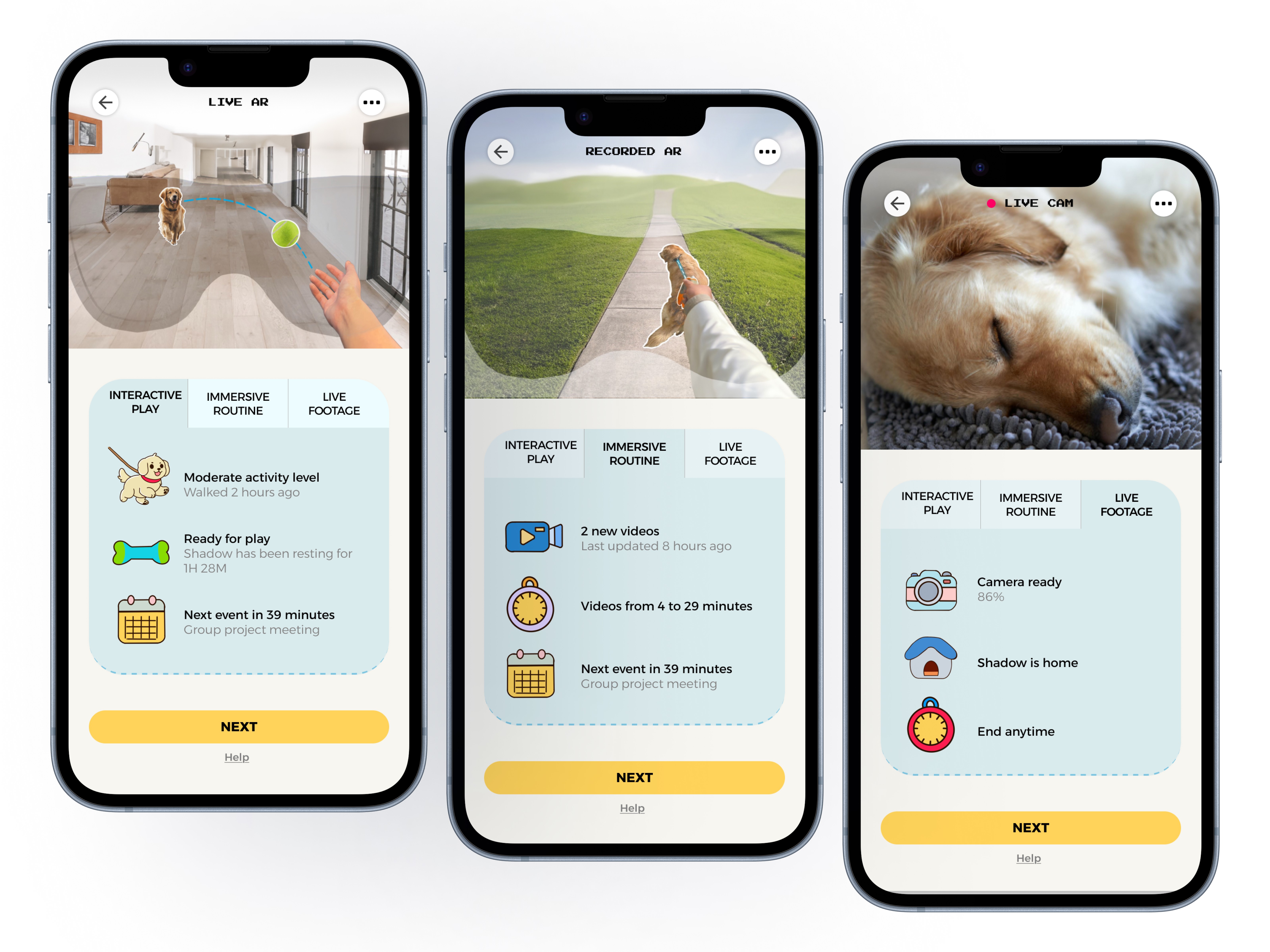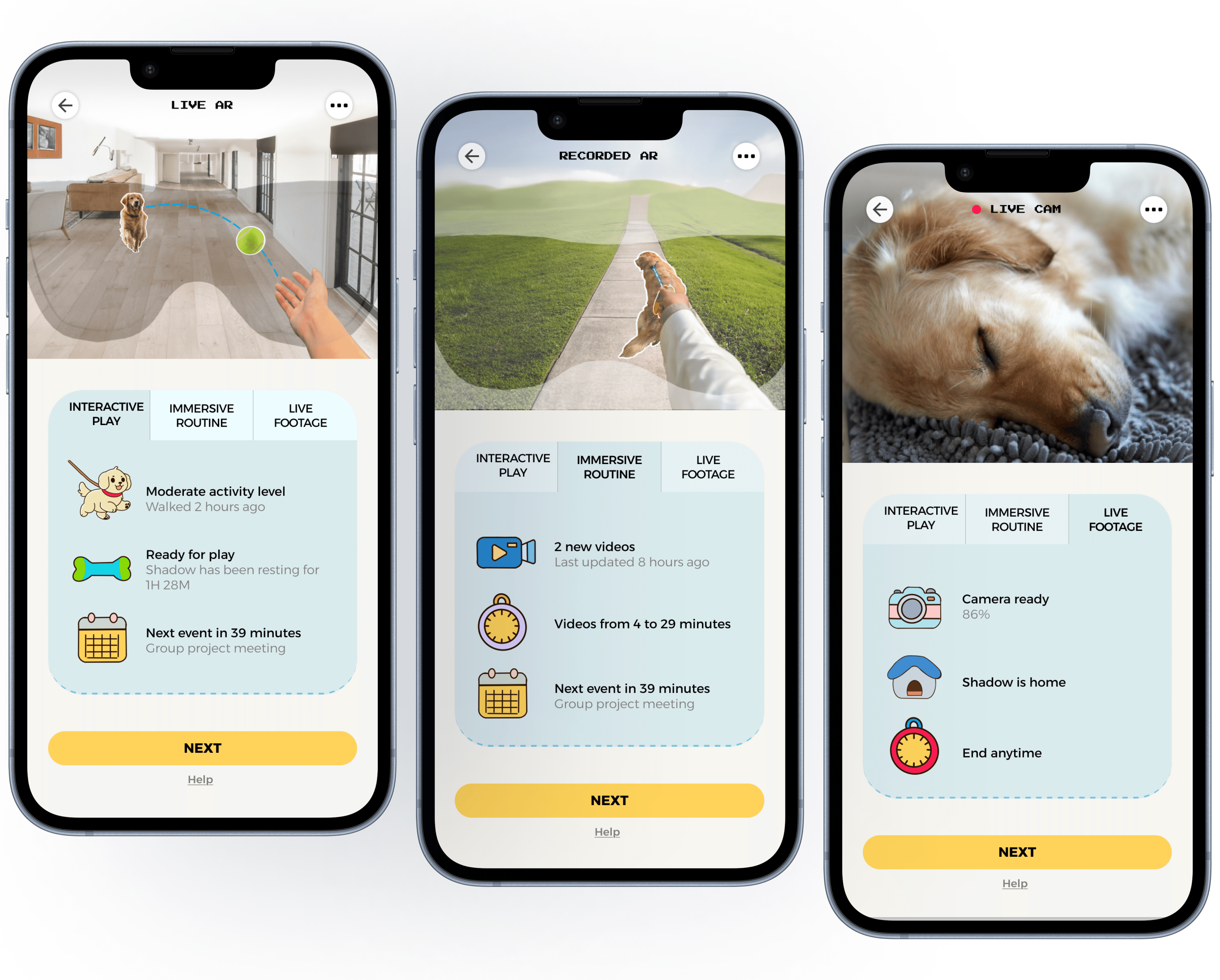Connect with your pet anywhere. Play together in real-time immersive AR, replay favorite routines with recorded AR, or tune in to the Live Pet Cam.