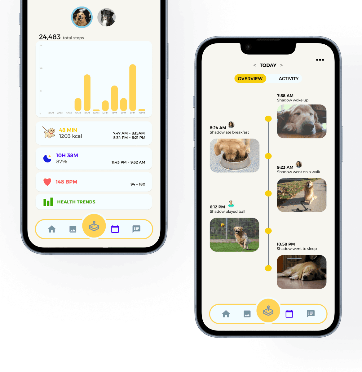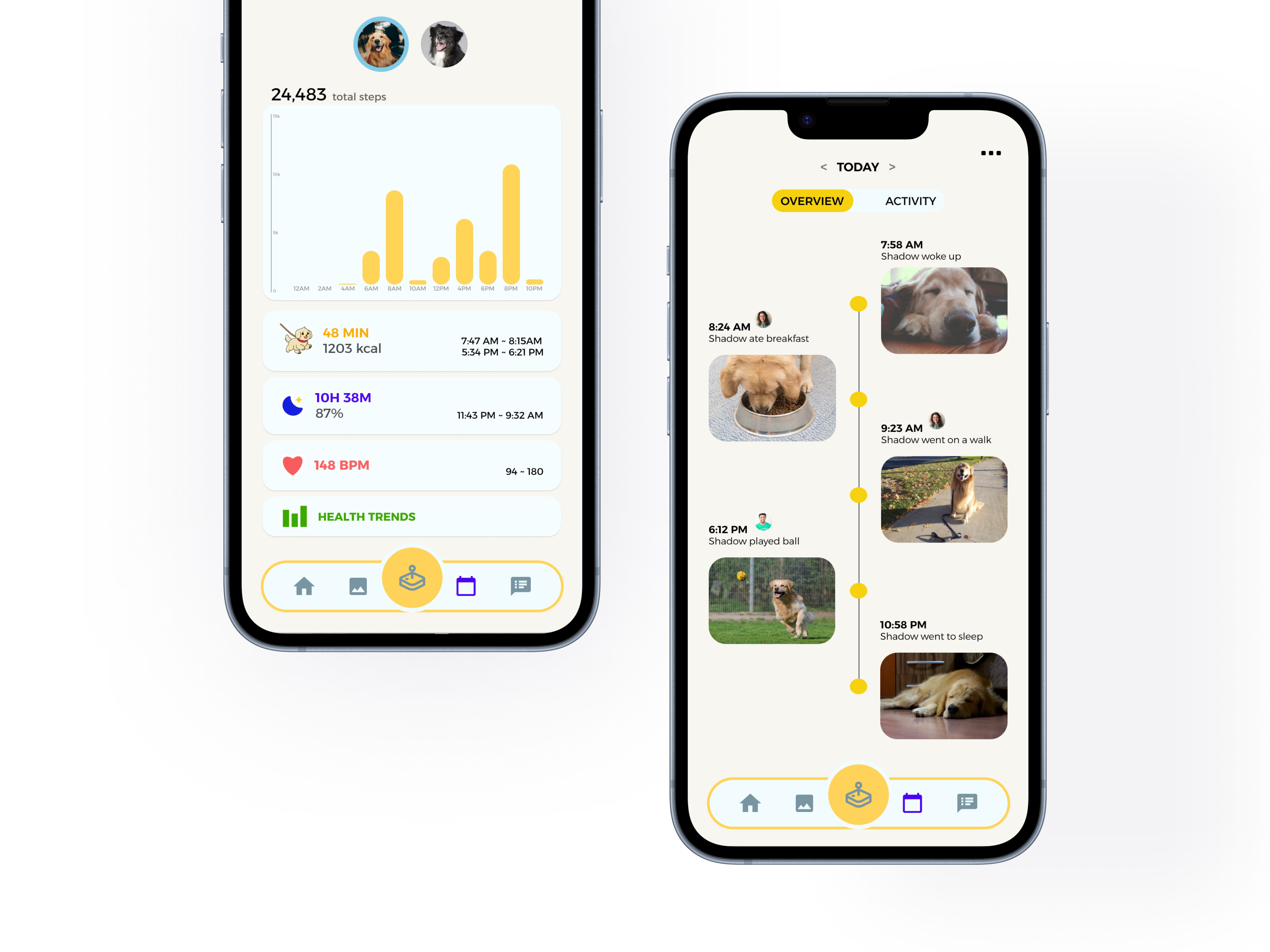 Sync with your favorite pet trackers to view activity data and timelines.