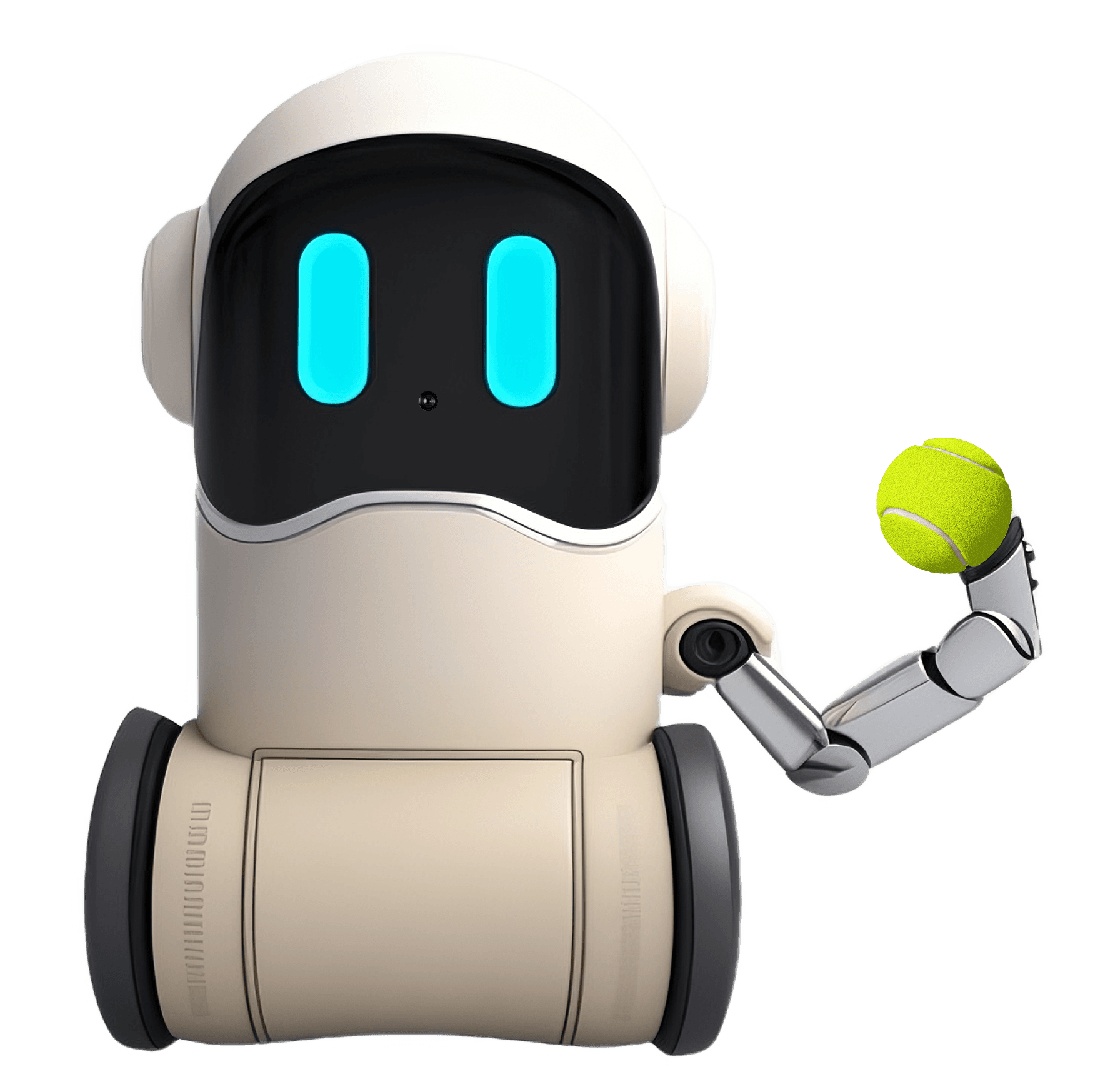 Waggo is the at-home robot that interacts with the pet at home. It uses a camera and ultrasonic sensors to track the pet and capture live video, and interacts with interchangeable toys through a tube-hand mechanism. The built-in storage compartment serves as a hub for holding different toy types, allowing the robot to switch between play modes during live AR sessions or quick check-ins.